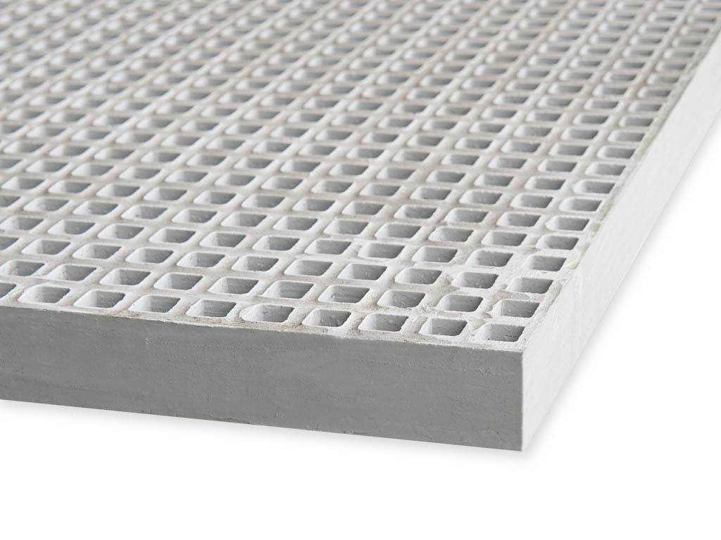 Dieses GFK-Gitter aus Isophthal-Polyester eignet sich für verschiedene Anwendungen. Dieser Typ hat eine Maschenweite von 19 × 19 mm und ist mit einer rutschfesten Konkave Deckschicht versehen.