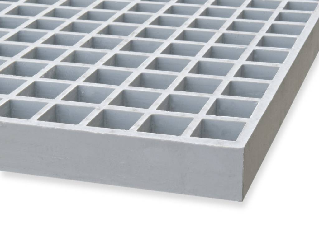 Dieses GFK-Gitter aus Isophthal-Polyester eignet sich für verschiedene Anwendungen. Dieser Typ hat eine Maschenweite von 50 × 50 mm und ist mit einer rutschfesten Konkave Deckschicht versehen.